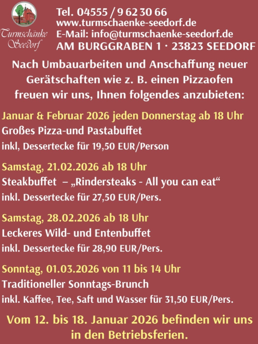 Telefon Turmschänke 04555 / 9623066.
